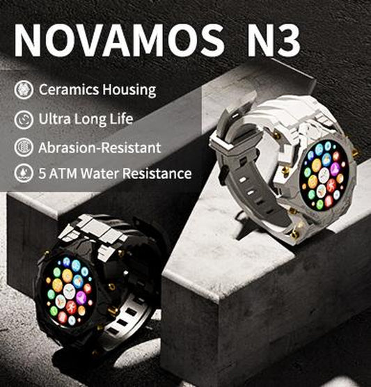 Novamos N3 Ceramic Smartwatch: Men'S Only High-Tech Wear | Fluoroelastomer Skin-Friendly Stra...